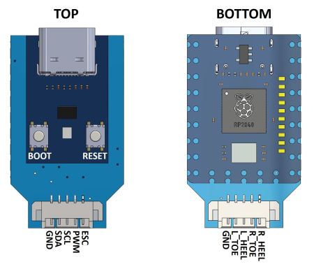 BRUCE SENSE refers to the Raspberry Pi Pico on BRUCE, which is used to collect the IMU and foot contact data, as well as to control the cooling system for BEARs. Refer to the figure below for pinout definition on BRUCE SENSE: